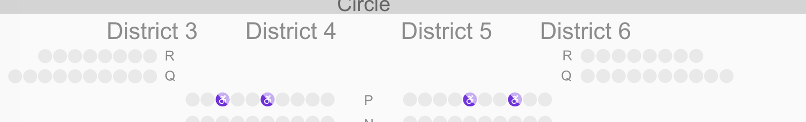 Wheelchair positions are in row P of Districts 3, 4, 5 and 6. Step-free seating is available in row P of Districts 4, 5, 7, 8, 9 and 10, and row Q of Districts 3 and 6.